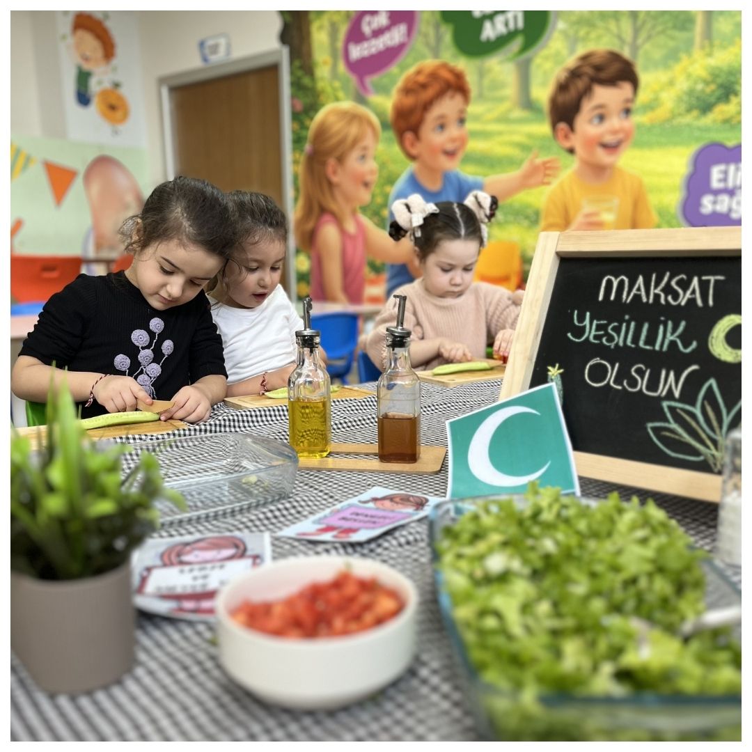 Ayrıca okulda yürütülen Artı Foody derslerini organize ederek, çocukların besinleri tanımalarını, sağlıklı beslenmenin önemini öğrenmelerini ve olumlu beslenme alışkanlıkları geliştirmelerini destekliyorum. Bu derslerde çocukların besin gruplarını tanımaları, sağlıklı tabak oluşturmayı öğrenmeleri ve beslenme konusunda farkındalık kazanmaları, öğretmenleri eşliğinde mutfakta yemek hazırlamaları hedeflenmektedir.