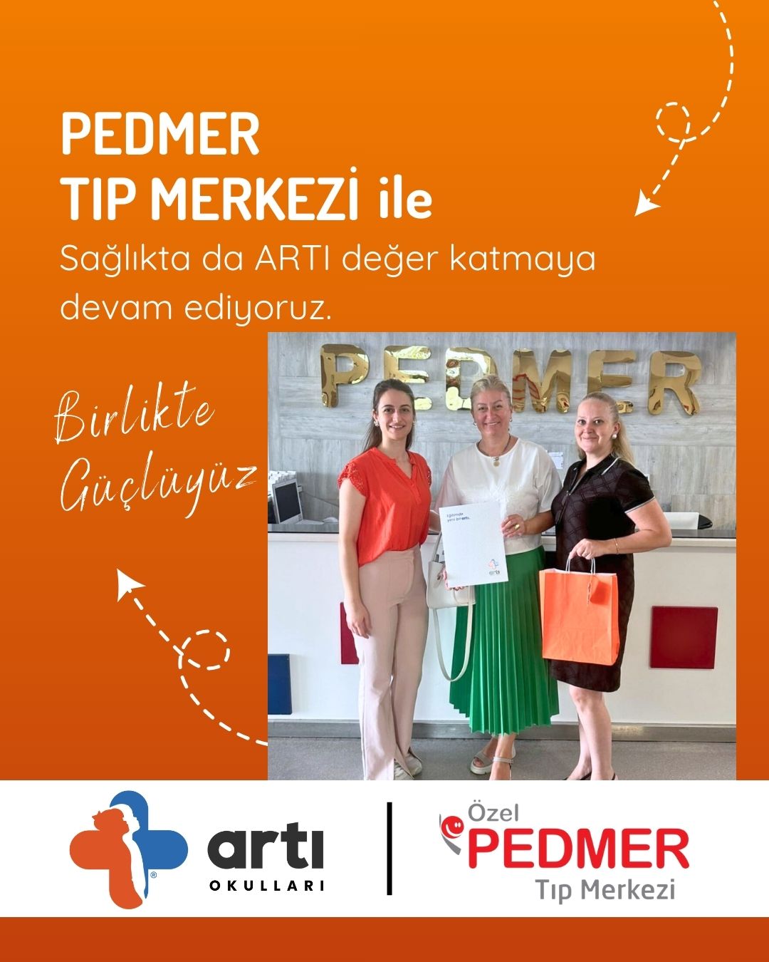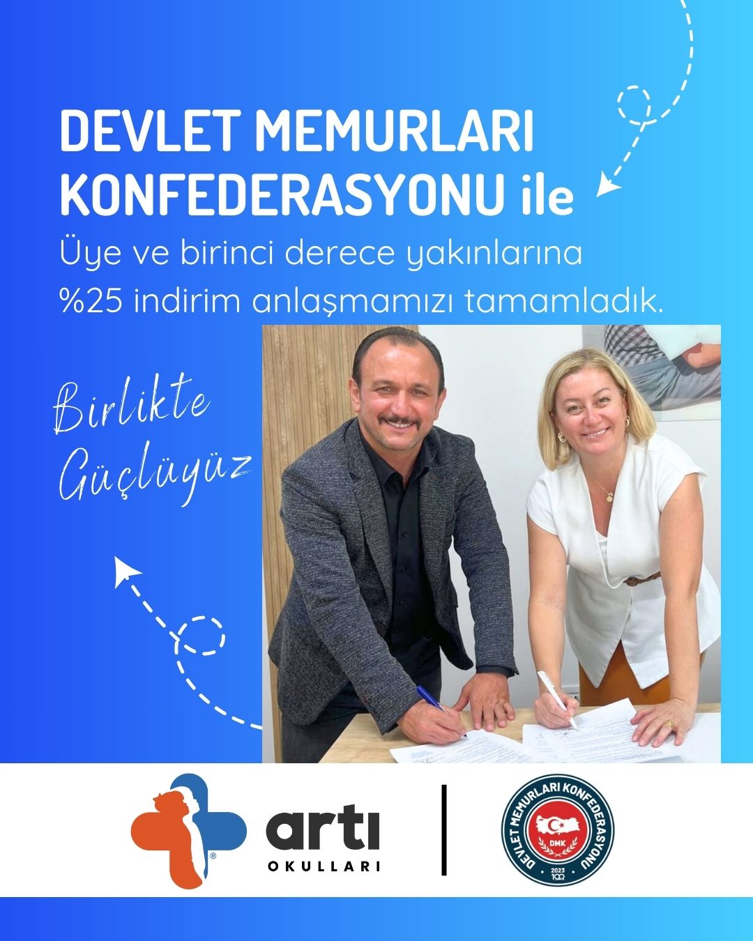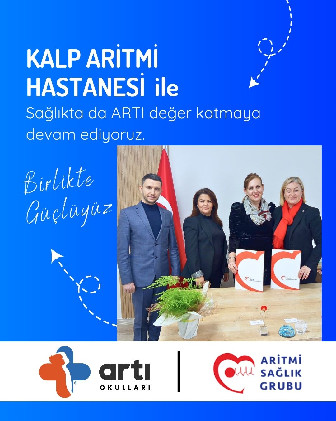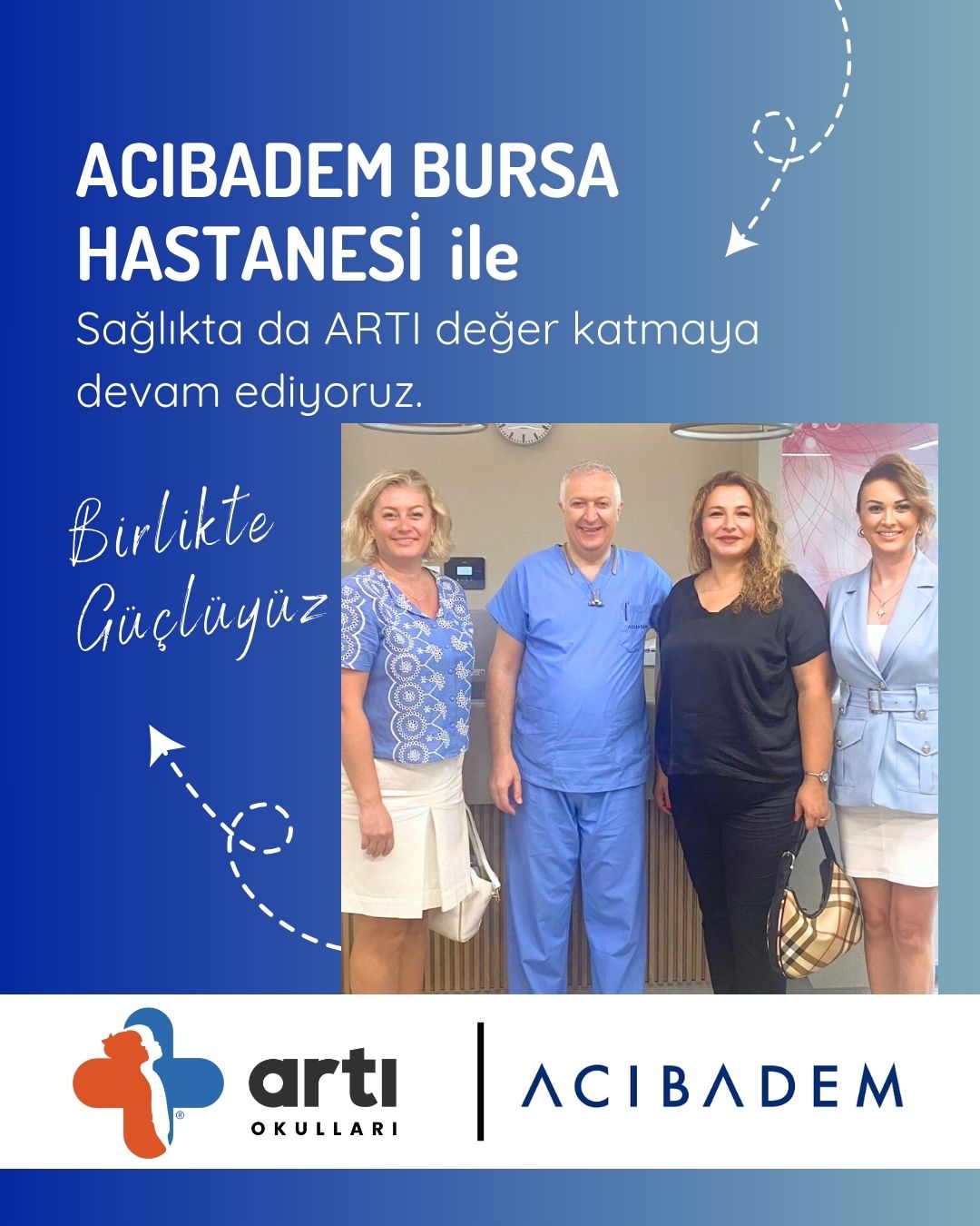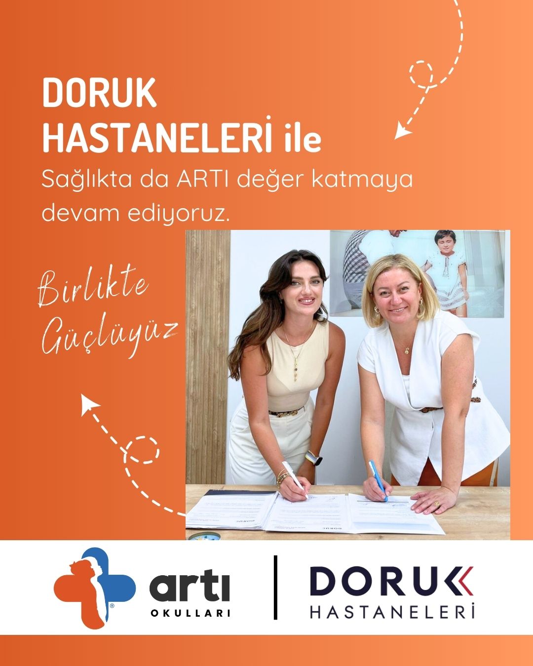 Özel Artı Okulları olarak, öğrencilerimizin ve velilerimizin sağlığı için Doruk Hastaneleri, Acıbadem Bursa Hastanesi, Kalp Aritmi Hastanesi, Romatem Fizik Tedavi Hastanesi ile işbirliği yaptık. Ayrıca spora ve sporculara ARTI değer katmak için Yenigün Tenis Akademisi ile de iş birliği yaptık. Devlet Memurları Konfederasyonu ile üye ve birinci derece yakınlarına indirim anlaşmamızı tamamladık.Bu iş birlikleriyle, öğrencilerimizin ve velilerimizin sağlığını destekleyen programlar, uzman kontrolleri ve bilinçlendirme çalışmaları ile ARTI değer katıyoruz.