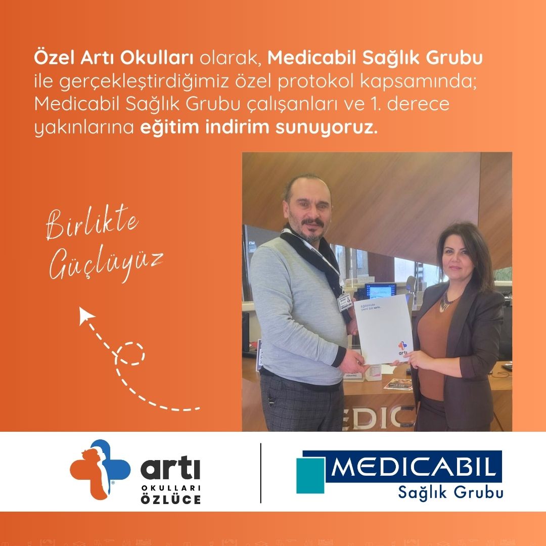 Özel Artı Okulları olarak, alanında öncü kurumlarla gerçekleştirdiğimiz özel protokol kapsamında; kurum çalışanları ve 1. derece yakınlarına %25 eğitim indirimi sunuyoruz.
